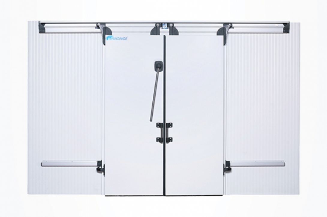 It is used for refrigerated rooms with wider openings where daily traffic needs a more balanced and efficient access system. It is especially useful when carts, racks, or repeated staff movement are part of normal operations.